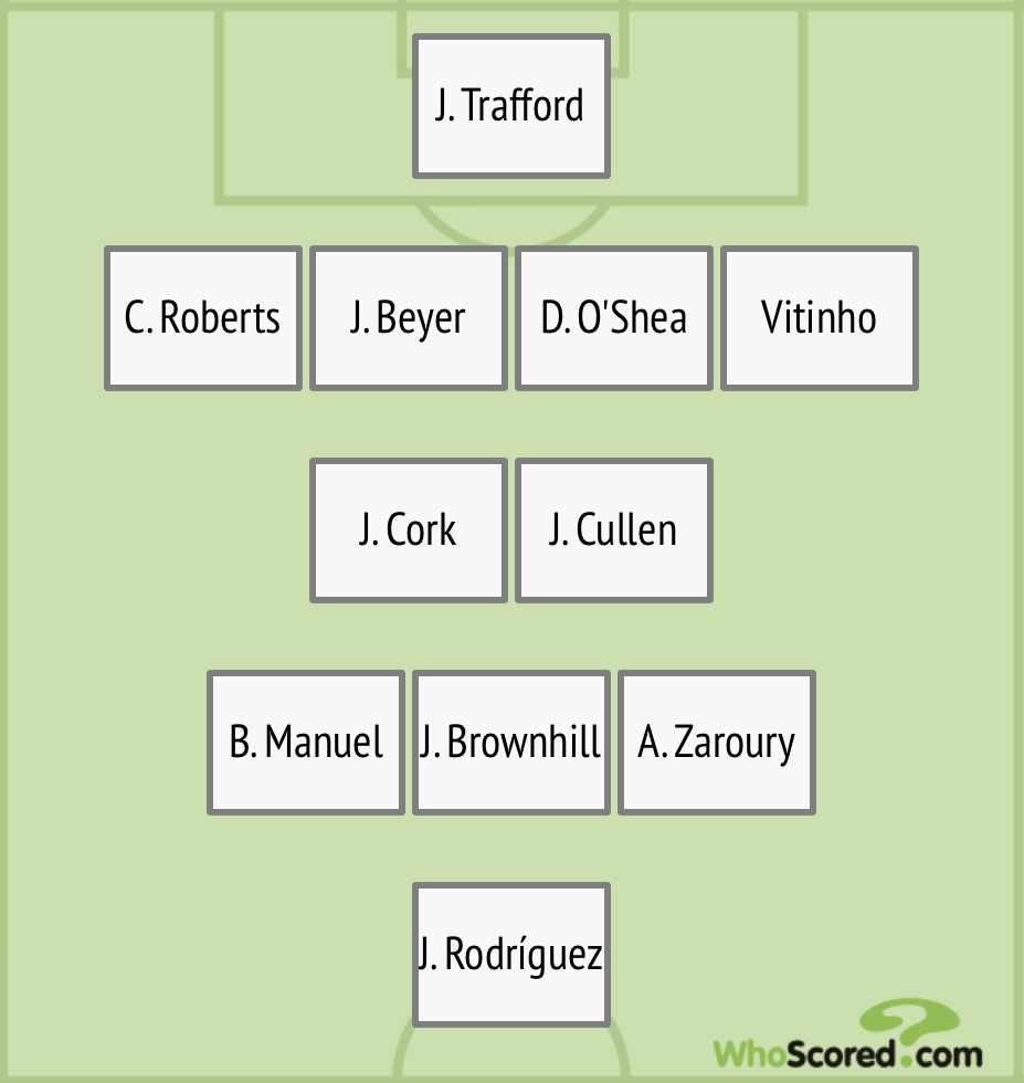먼저 홈팀 번리의 뱅상 콤파니 감독은 4-2-3-1 포메이션을 들고 나올 것이라 예상한 가운데 골키퍼 장갑은 제임스 트래포드가 낀다. 이어 포백에는 코너 로버츠, 조던 바이어, 다라 오셰이, 비티뉴가 나서며 잭 코크, 조시 컬렌이 3선에 나선다. 그리고 2선에는 벤손 마누엘, 조시 브라운힐, 아나스 자루리가 나서고 제이 로드리게스가 최전방에 나선다.