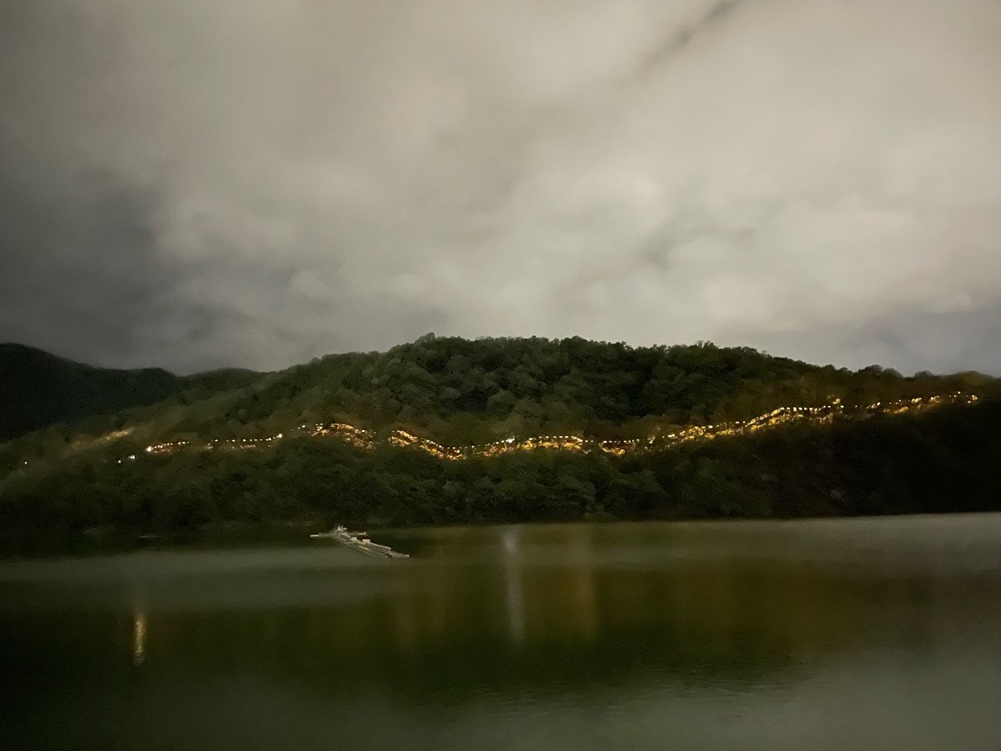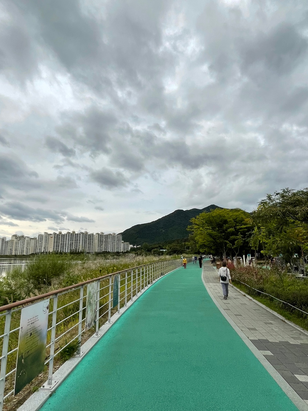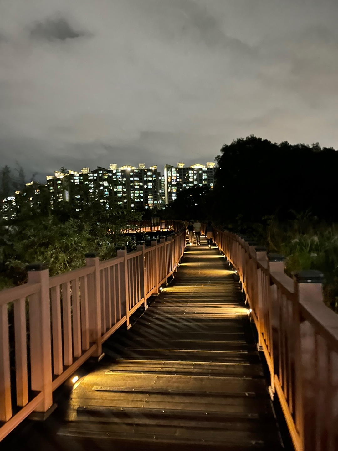 저녁에 걸으시다가 저수지 쪽을 보시면 산에 있는 산책로가 예쁘게 보여요